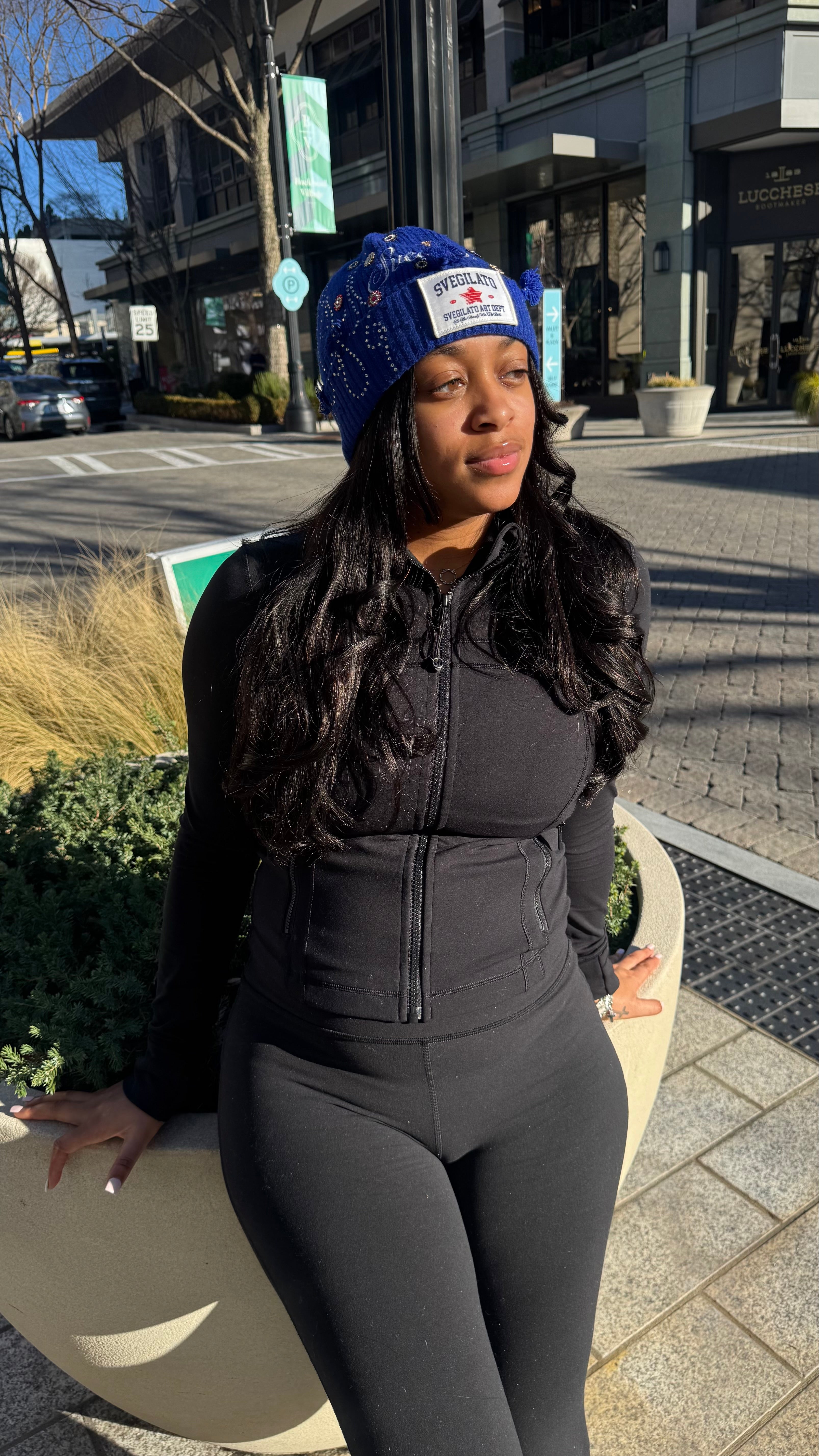 This SVEGLIATO beanie turns heads with custom rhinestones and detailed embroidery. It’s made to stand out & goes well with any fit.